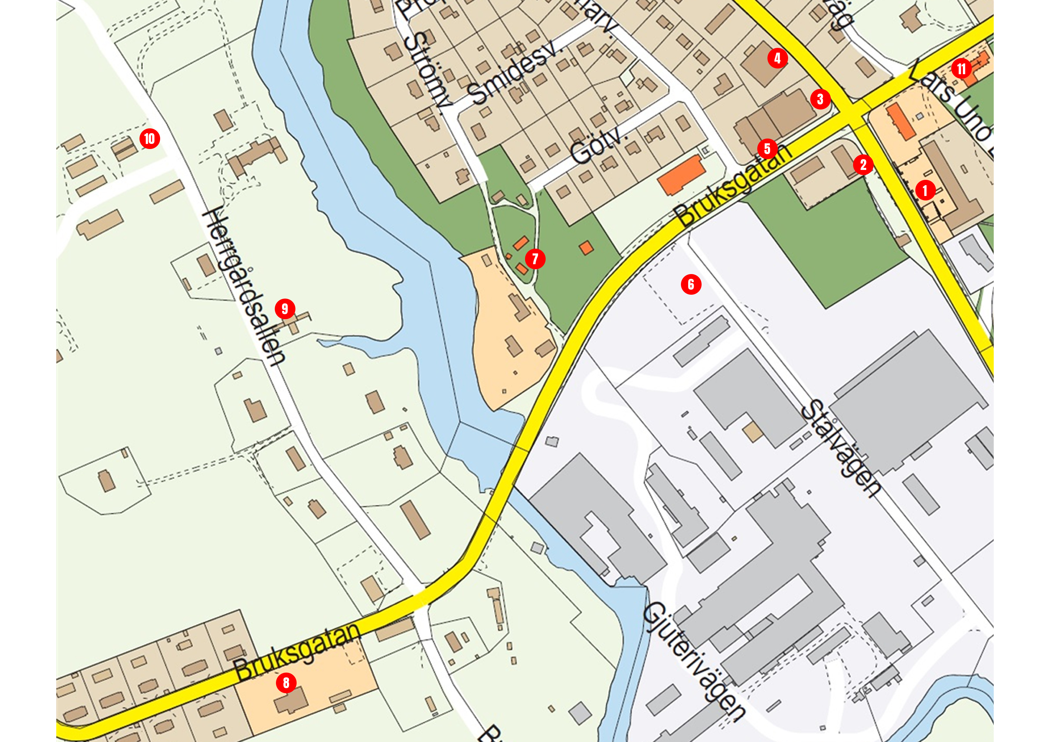 Marknadsförsäljning: Torget, Broskolan, Kafé Ritz, Torpet, Bruksparkeringen (Kafé Ritz Hjulträff), f d Sparbankskontret,Orangeriet och Wiborgs gårdsbutik.